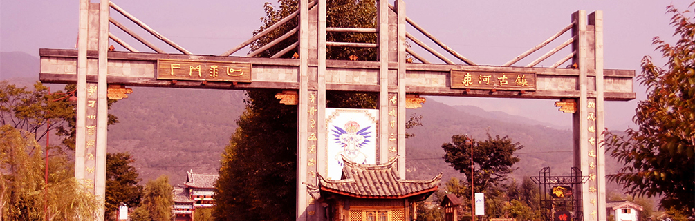 麗江束河古鎮(zhèn)景區(qū)東巴象形文字寨門位于束河古鎮(zhèn)南門收費(fèi)站