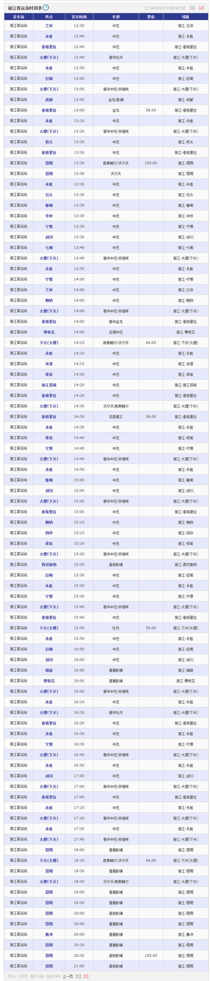麗江客運站時刻表僅供參考,如有變動,請以當地汽車站時刻表為準。我們建議您致電0888-5121106或者到售票窗口查詢。謝謝您的關注與理解!
