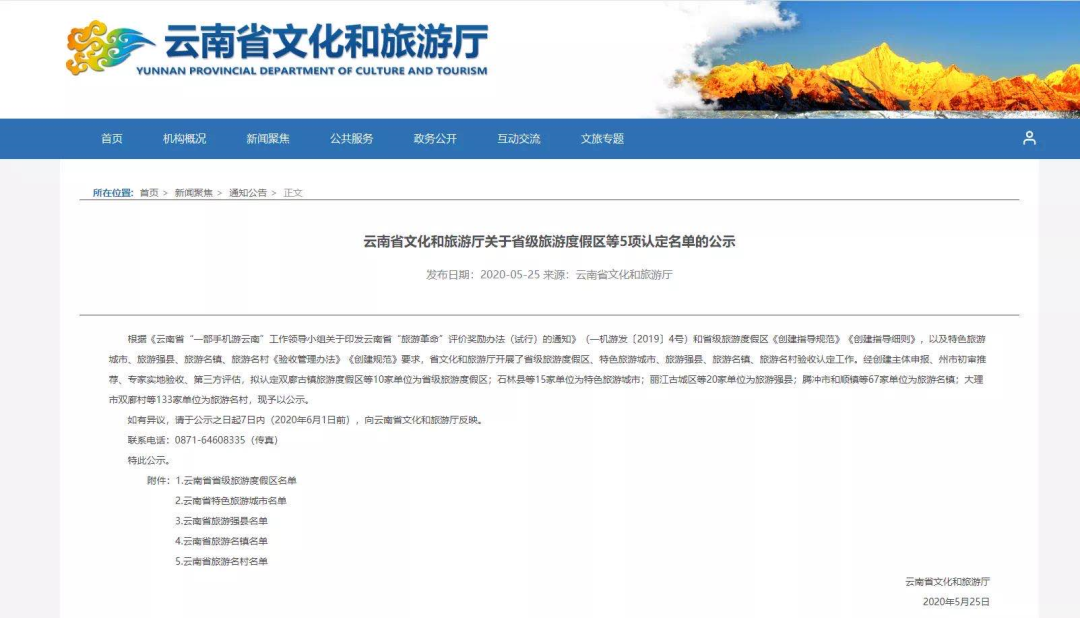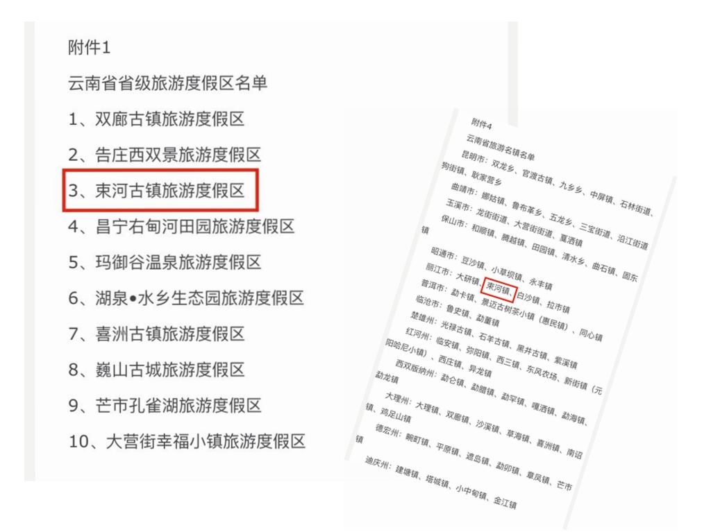 5月25日,云南省文化和旅游廳發(fā)布《關(guān)于省級旅游度假區(qū)等5項認定名單的公示》,對省級旅游度假區(qū)、特色旅游城市、旅游強縣、旅游名鎮(zhèn)、旅游名村5項認定名單進行公示。其中,麗江束河古鎮(zhèn)古鎮(zhèn)旅游度假區(qū)被擬定為省級旅游度假區(qū),束河鎮(zhèn)被擬定為云南省旅游名鎮(zhèn)。