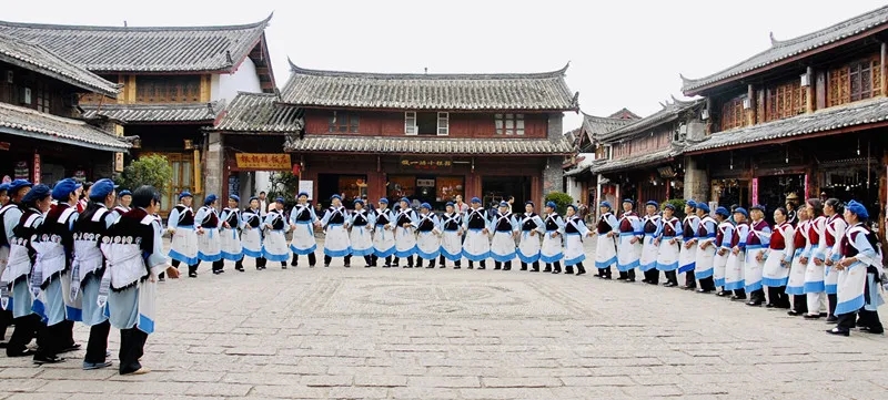 束河,納西語稱之為“紹塢”,意為 “高峰之下的村寨”,“高峰”指的是背靠古鎮(zhèn)正對著青龍橋中軸線的聚寶山。束河古鎮(zhèn)是納西族先民在麗江壩子中最早的聚居地之一,是茶馬古道上保存完好的重要集鎮(zhèn),也是納西族從農(nóng)耕文明向商業(yè)文明過渡的活標本,是對外開放和馬幫活動形成的集鎮(zhèn)建設(shè)典范。